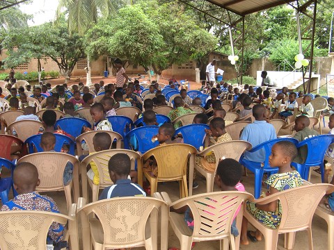 In Togo, Compassion has about 4,000 kids. On Saturdays the kids gather at 20 different sites around Lomé, the capital city. The kids receive meals and education at the sites. The education is well rounded. They learn about Jesus, hygiene, social skills, and vocational skills to help them out of poverty. They also learn what Christian community looks like.