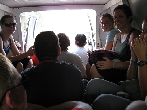 *A white panel van w/ no windows and the heat stuck on is the best way to travel.  Nothing like seeing a panel van full of white people flying down the road.