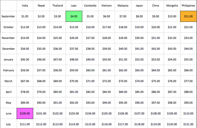 4th – On the grid below, there are 121 squares representing the 11 countries and 11 months of this trip. They vary in donation amount from $1.00 all the way up to $121. If 118 more people commit to a square in the next 14 days, I can leave fully funded on September 5th. Every square is equally important in order to reach my funding goal. It’s proof that literally every dollar helps. Just click on “Support Me!”
