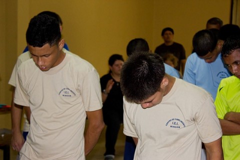 In the afternoon we went to a young men’s prison. When we arrived, we were directed to a room that resembled a cafeteria. We set up our equipment and waited for the boys to come in. As lines of tan and blue shirts filled the room, my eyes were directed to one boy. We started the program with singing, “Where is the Love?” by Black Eyed Peas, to set the atmosphere as fun and inviting. And then we played, “Musical Food”, which consisted of bags filled with a variety of random food from onions to eggplant to snickers. The object of the game was while the music was playing, you passed the bags. When the music stopped, you had to take a bite of whatever was in the bag. The boy that had caught by attention was the biggest sport through both of these. He clapped and cheered as we made fools of ourselves and got the onion on the first round, and took a huge bite out of it. What a champ! His energy was contagious, and something just felt “different” about him, so I started praying for him and asking the Lord to move in his heart through our program.