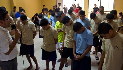 In the afternoon we went to a young men’s prison. When we arrived, we were directed to a room that resembled a cafeteria. We set up our equipment and waited for the boys to come in. As lines of tan and blue shirts filled the room, my eyes were directed to one boy. We started the program with singing, “Where is the Love?” by Black Eyed Peas, to set the atmosphere as fun and inviting. And then we played, “Musical Food”, which consisted of bags filled with a variety of random food from onions to eggplant to snickers. The object of the game was while the music was playing, you passed the bags. When the music stopped, you had to take a bite of whatever was in the bag. The boy that had caught by attention was the biggest sport through both of these. He clapped and cheered as we made fools of ourselves and got the onion on the first round, and took a huge bite out of it. What a champ! His energy was contagious, and something just felt “different” about him, so I started praying for him and asking the Lord to move in his heart through our program.