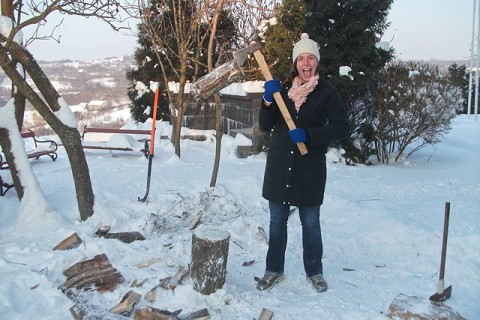 Me chopping wood! Yes, that's a stump of wood in my ax, haha