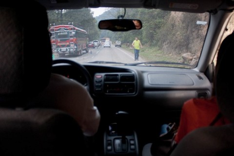 Picture this – canyons all around you. You’re on a road that’s made out of dirt that’s probably 4 yards wide. And tractors and men in orange shirts are digging like crazy…everywhere. And here you are, in a white, four door, tracker, in the middle of traffic, broken down. Cars can’t pass on either side. And there you sit, stuck. Traffic is ridiculous. Kinda like Interstate 66 around 4pm in a weekday, bumper to bumper. Yikes.