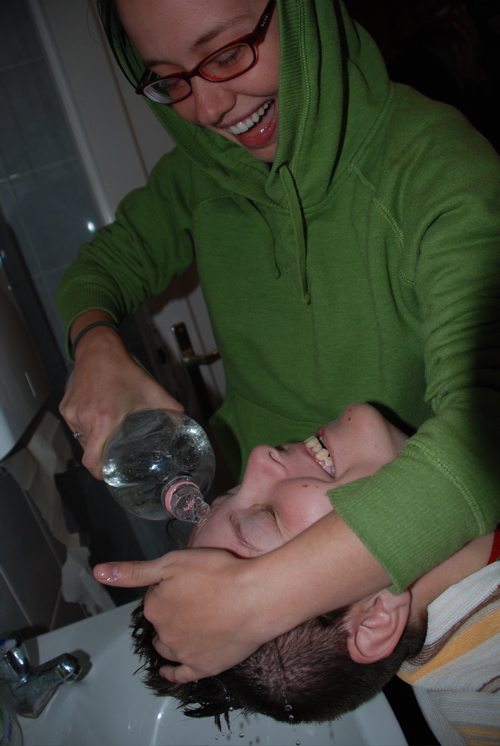 the bathroom and doing it over the sink to avoid making a huge mess. It was then that the seven of us walked