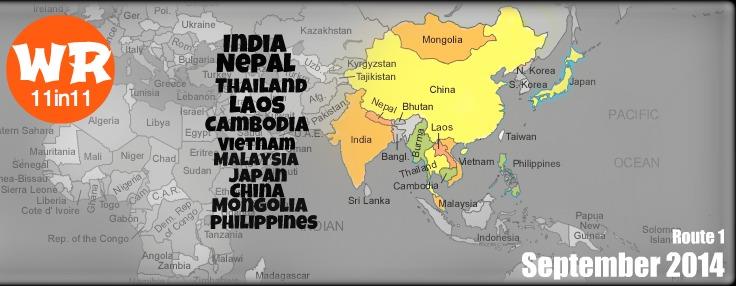 First off, the World Race is an 11-month mission trip. That might seem like a long time, but considering I just lived in Japan for 3 years (which felt like only 3 months), that’s not really so long after all. The ADVENTURE part of it comes in when I tell you where I’m going: Asia (hmm, didn’t see that one coming did you?). More specifically, I will be traveling to eleven different countries within Asia, all in those eleven months. Yes, you read that right. I will be going to 11 countries in 11 months, a different country for every month. In World Race terms, this is known as “11n11.” As of right now, this is my route!