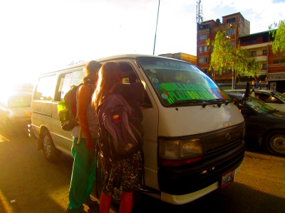 Rule #8 – There is no meter to determine how much you pay. As you become more acquainted with the system, you begin to figure out the prices and how they vary. But, even if one driver charges you one boliviano, this does not mean every driver going to the same place has to charge you one boliviano. He can charge you one, or one-twenty or even one fifty if he thinks he can get away with it.