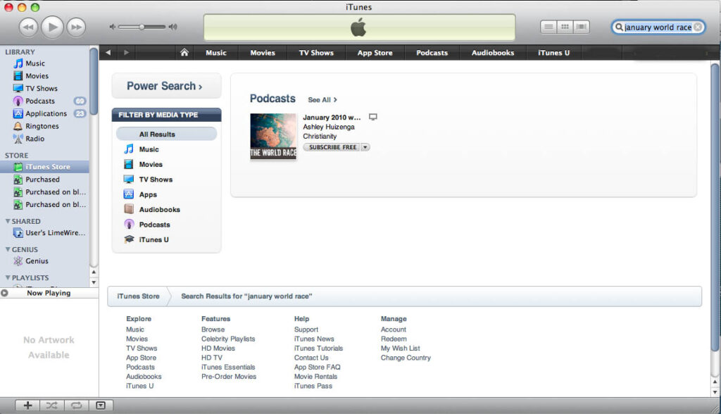 Signing up is easy and free. Just open iTunes on your computer and go to the iTunes store. In the search field, type ‘january world race’. And click to subscribe.