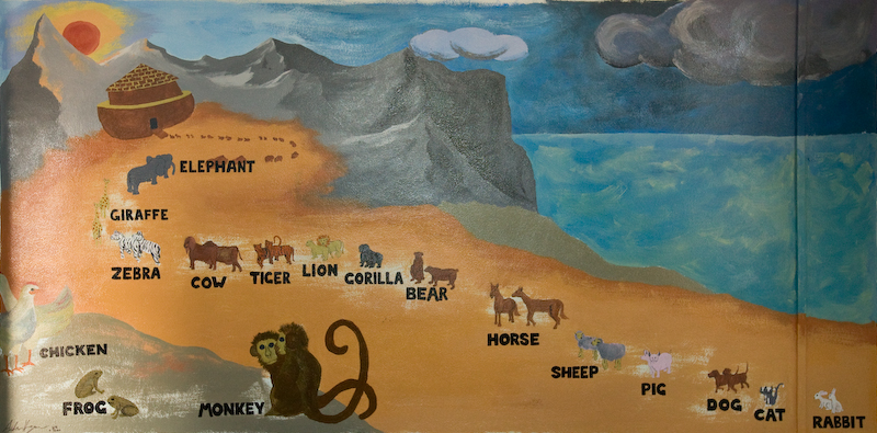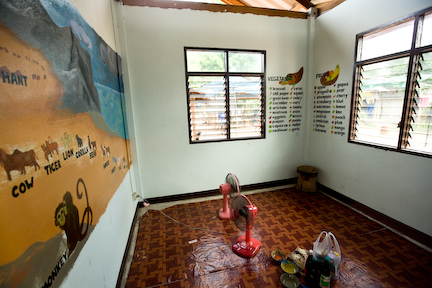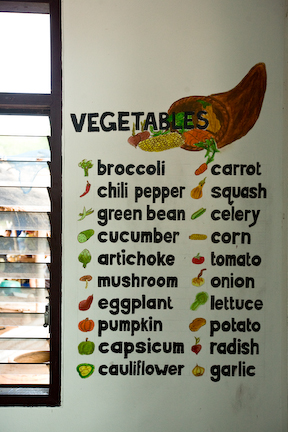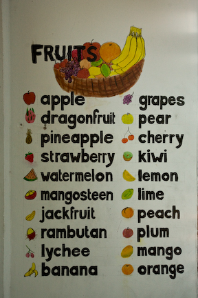 Our contact in Thailand wanted to have some English words painted on the walls of their English classroom. This is what I came up with. Everyone helped painting the letters, Jessi Marques did and awesome job coloring the fruits and veggies, I was on the mural. Done in more or less 24 hours. (I still have paint on my foot two weeks later)