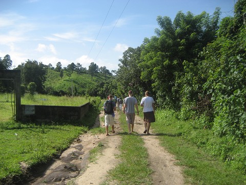 It was two thirty in the afternoon as we once again crammed in to the back of a pick up truck. With way too many people in the truck, we were on our way to a small village nestled in the mountian side of Nicaragua.  The mountains in Nicaragua have continued to take my breath daily.  The rolling green pastures coupled with the vibrant green forests are spectacular. Our team arrived in the town of Santa Clara. Santa Clara is a cute little town with one “major” dirt road in the center (and by major I mean you can walk the entire road in five minutes).  There was a small baseball field a few blocks behind the church hosting the Friday evening little league game. Cow pastures and corn feilds were seen in every direction, and the house where we were staying for the night had a few chickens and pigs running around in the back yard.  Saturday  morning we met with the pastors and church members. They had planned for our team to participate in sharing the gospel with locals by visiting people in their homes.  They told our group we were going to Pali. Pali is the name of the  grocery store in Nicaragua. So, at first I thought we were going to Pali the local grocery store, but my confusion was soon settled as we began a long hike up a muddy road. We hiked for miles before arriving at the houses, which the pastors planned to visit. After our house visits Dan, Josh, Pamela and I contniued to walk along this dirt road due to the insane amount of bugs attacking us when we stood still.  As we walked we first came across a tree with the largest trunk I have ever seen. Next, we walked by a women with a basket on her head holding the hand of her young daughter.  Dan, in broken Spanish, began talking with her. She told us she wanted prayer. She led us through a barb wire fence, past a wine press, and through some corn feilds, to her small shack. The house was tiny, and the walls were made of rotting wood. Her daughter sat in the front on a small bench, paralysized. She looked about eleven years old, and her legs and feet were atrophied.  We talked with the family and then we prayed over their daugther.