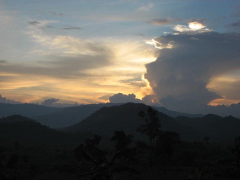 After ridding along a winding red dirt road we arrived at the farm in Kanchanaburi, Thailand. Kanchanaburi, a small village of about one hundred thousand people, tucked away in the river valley of Thailand’s majestic mountains. The golden steeple of the local temple could be seen in stark contrast to the lush green mountain peaks. Our tree houses over looked fields of banana trees, and the noise of cow bells could be heard ringing as the herds grazed in our backyard pasture. My favorite time of each day was enjoying a vibrant array of colors dancing through the evening sky as the cool air rolled in with the setting sun.
