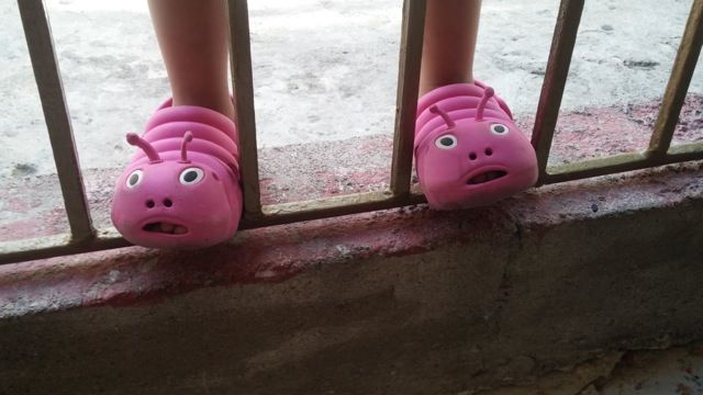 Little feet visiting our front porch, just to be near us. (with the cutest shoes.)