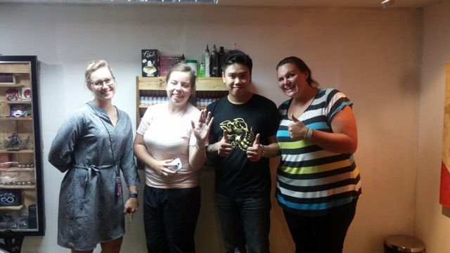 Thailand. It’s beautiful. It’s quiet. It’s polite. It’s relaxing. It’s adventurous. We arrived early in the morning, riding in the back of a pick up truck I couldn’t believe the hush I observed. Kelly and I rode in the back of the truck with the packs, welcomed by a refreshing cool breeze. It was the first time in a while I was cold, (and last time for a while.) The first week we taught English to both boys and girls, at different times. The rest of the time, we only taught boys, English and bible. The girls drew Kelle and I pictures, of ourselves. They’re adorable. I found a place that reminded me of home, but it’s only an ice-cream shop. On our off days we explored with elephants, visited a botanical garden, and hung out with our translator, Tony. We had a fun cowboy party where we learned to line dance and two-step. We wrote songs, we danced in the rain, we learned how to fish with a gun, we got tattoos, we played funny games, we did bar ministry, and once a week we taught preschoolers English at the local daycare.