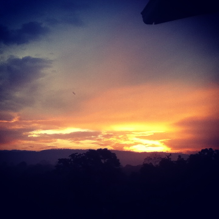 Watching the sun set through a little “hole” in the clouds.