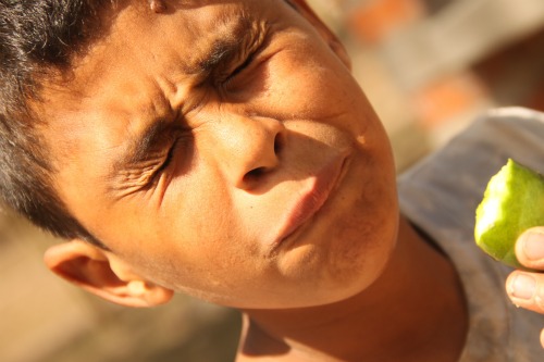 Carlos eating the mangos