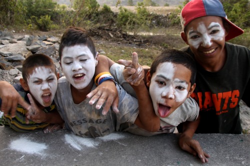 Fernando, Carlos, Luis and Ariel after they ground up chalk and put it on their faces
