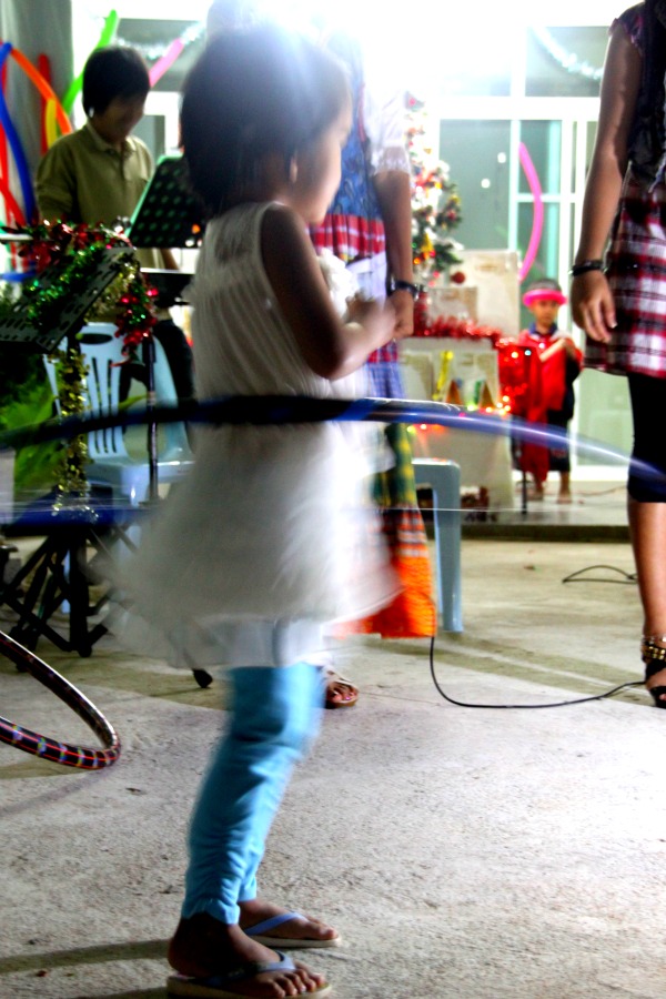 Hula Hoop Contests are very popular and played at almost ever Christmas Party we went to!