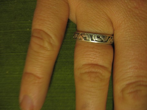 When I became a Christian at 13, my mom found this footsteps poem, talking about how when we see only one set of footprints in our lives, it's not that God abandoned us, he has picked us up and is carrying us. It is a beautiful image and pretty soon my mom was finding the poem on tons of stuff and picking it up for me wherever she went. Fast forward years later, I'm working at a climbing gym and I find a small silver ring covered in tiny footprints (it was there for months, email me if you know it's provenance). I have hardly taken it off since i found it. I even have a cute little tan line. Its like my own private promise ring, a promise between me and the Lord that I will pay attention and more importantly trust in Him, that He has my best interest at heart.