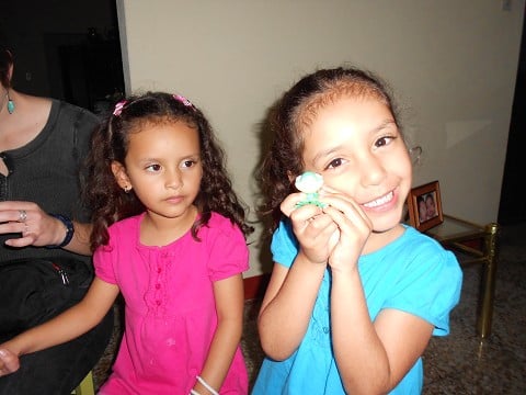 Here is Froggy with two sweet gals, 5 year old Elizabeth and Isabella, the twin daughters of our ministry contacts Luis and Mariella.