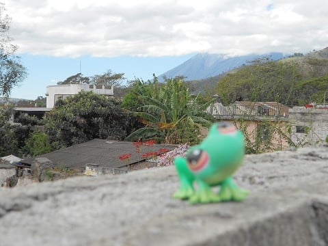 Here is Froggy on the roof of our hostel in Antigua Guatemala, enjoying the perfect temperature and beautiful view.