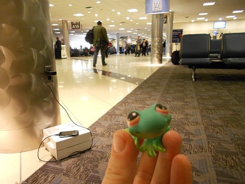 Here is Froggy at LAX, his last day in Cali for a year. Vaya con dios Froggy!