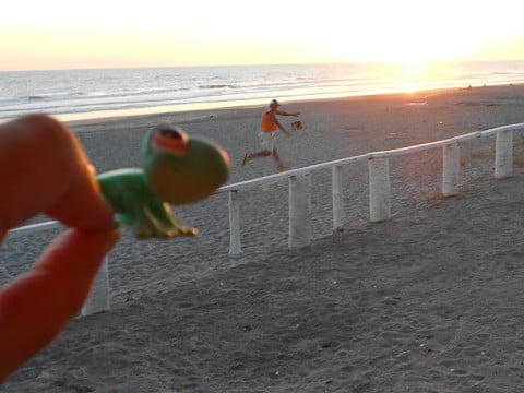 Here is Froggy enjoying sunset at Costa del Sol, a stunning beach on the Pacific coast of El Salvador. FYI, the Pacific is swimmably warm here! I tried to explain that the ocean is cold in San Diego, no one, not even fellow Californians beieved me…
