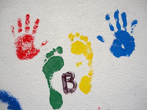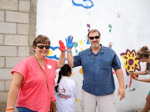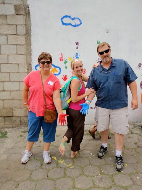 At one children’s center that we served at, we helped the kids paint the outside of their wall with bright colors of hand and foot prints. Of course, we left our mark on the wall as well.