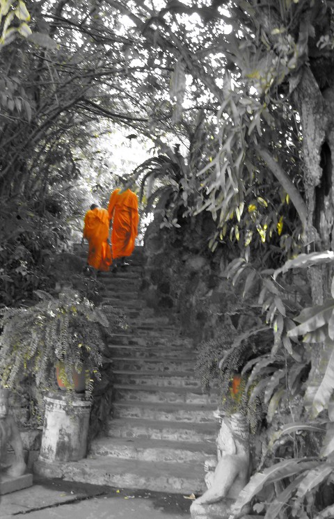 Monks can be seen anywhere any time of the day. You will be able to pick them out of a crowd by looking for the bright orange clothes they ware. And don’t worry, you will see them with cell phones, digital cameras, ipods, and riding on motorcycles. Plus, they get to go anywhere and do anything they want for free in the city.