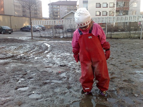When I was in grade school, there was a time when playing outside a recess had been delayed due to rain. The day we were finally aloud to go out and play, we all had our rain boots on because it was still muddy despite the sunny weather. I got seriously excited about playing in the mud puddles and began stomping through them. Then suddenly my foot got caught in the mud, and boy was it stuck! It was so stuck that the very good looking recess aid had to come pull me out. But much to his surprise, my boot was more stuck than it looked. So he picked me up right out of my boot, flung me over his shoulder and walked me down to the office. (My cheeks go so red, I thought they would stay like that for the week!)