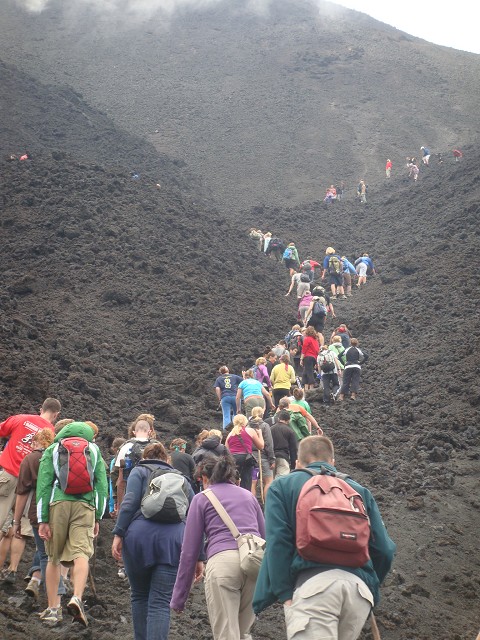 Just to give you an idea of what we had to contend with; cooled lava rocks that not only slid out from under your feet but also cut any part of the body exposed to them, extreme winds, a two hour hike up-hill the entire way and avalanches of lava rock that when hit not only cut you but give you quite the bruise.