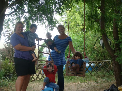Katie and I with all the kids in the backyard.