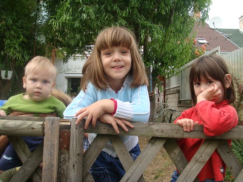 The kids posing by the fence…Toni wouldn’t come and pose, so he is missing. Please notice that Katie is being very sneaky holding baby Joseph up over the fence.