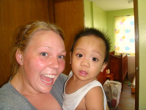 Me with Daniel right before I give him a bath. You can tell by my hair that working in the nursury makes me a little frazzled!