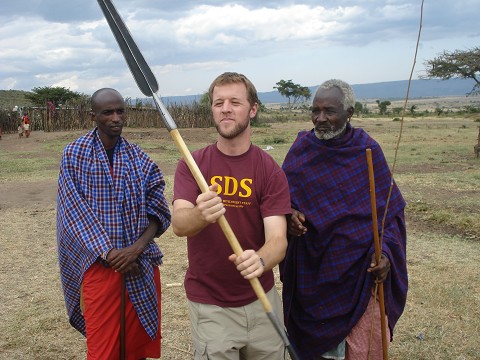 After meeting many members of the tribe and joining in with their welcoming dance, I met a young man named Ole. I say young man…and mean “man”. The reason for that is because he has killed a male lion! One of the unique traditions in the Masai tribe is that in order to transition from a boy to a man, you must kill a lion. I couldn’t believe what I was hearing. I couldn’t believe that people like this still existed on this earth, and I couldn’t believe that becoming a man required killing the king of the jungle. I had to know more. My first question was “how?”. I asked Ole about his experience, and he said he quietly approached the lion and got within range to use his spear. Then he finished the job with his knife. My next question was “what if you missed?”. His answer was what I expected.