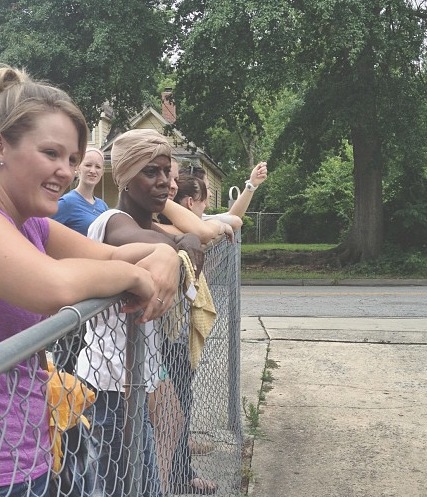 So we did. About 4 houses down on the right was an older African American lady on her front porch WAVING AT US. Literally WAVING.