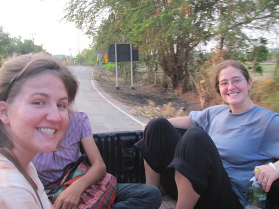 piled into a pickup- our packs, a driver, our translator, her husband and us.