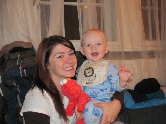 and I stood in the kitchen, Larissa working away in a bucket on the floor, we