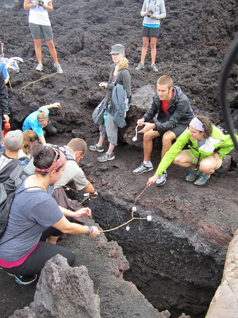 Yesterday I had the amazing opportunity to hike Volcano Pacaya, which is about 1 hour outside of where we are staying in Antigua, Guatemala. It's elevation is 8400ft and the whole hike is on volcanic rock and ash. Just a little bit different from my fav hiking in Malibu, CA. About halfway up I was fairly convinced I was going to die but as you probably figured out by now, I didn't. Phew! As we were nearing what I hoped was the top of the volcano our guide, Lionel, kept giving us a time frame of how much longer to go. Right when I was ready to pass out and roll back down Lionel yelled "tres minutos a muy beautiful, 25 a marshmellows." Spanglish translation: 3 minitues till something really beautiful, 25 till we get to roast marshmellows at the top. Score!!! Talk about instant rejuvination.