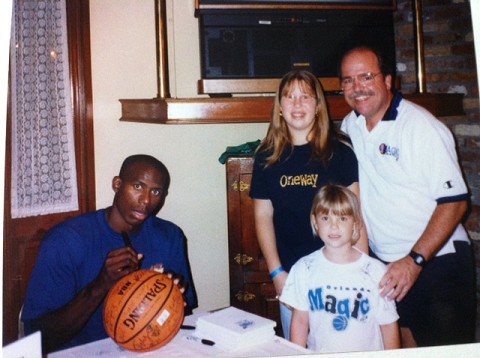 From the ages of 9 – 17ish I was obsessed with Orlando Magic basketball. Dad and I spent sometimes 3 nights a week on the top row of the Arena cheering our hearts out. One time we were at a meet-the-players event and I got the chance to karaoke with my fav player – Darrell Armstrong. I will never forget that day because I was so nervous and excited to make beautiful, radio worthy music with Darrell. I’m sure I wanted to sing something along the lines of Mmmbop or Christina Aguilera, and my Dad made me sing some Alabama song I’d never heard of. Needless to say no one who heard us requested a record deal and Darrell didn't ask me to hang out afterwards. Life lesson: always choose a crowd please, NOT Alabama.