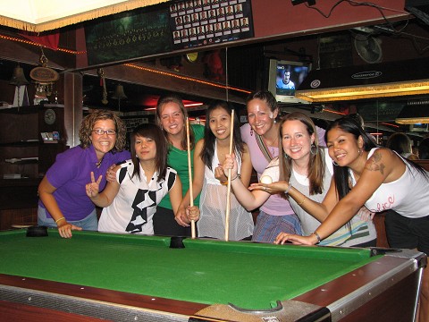 the girls, laughing together as we ate live shrimp, grasshoppers,