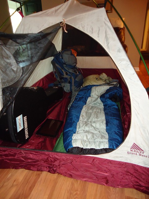 I finally set my tent up tonight. And I loaded it with my all the things I’ll be taking with me next year. And it wasn’t that much…. Scary thought. And even scarier to look at… This picture is my house, bed, and belongings for the next year. That’s it.