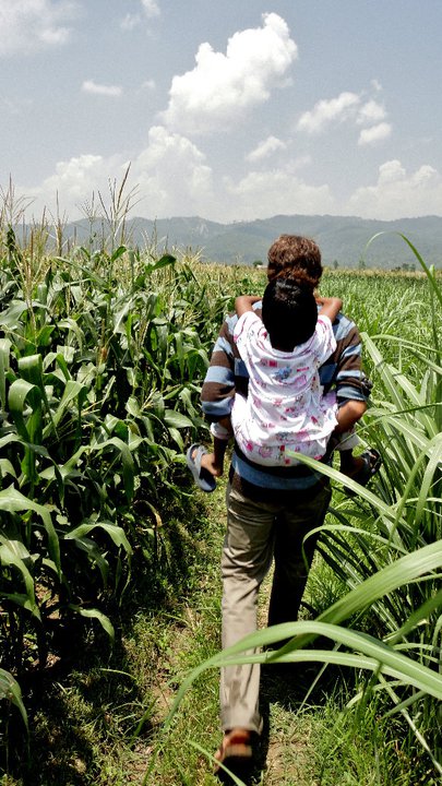 mountain range, is teaming with life. The fields are full of workers, kids are