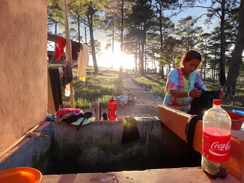 Now I’m picking this back up on Wednesday at around 6:45 PM. There’s about 5 of us sitting at a table typing things. Savannah is sitting to my left. So, the last two days we’ve been digging out huge rocks from the ground in order to prepare the ground for a new patio. We had to bust up & remove the old one to build the new one because the way the old one was built allowed water to run into the main room when it rained, so we’ve had to raise the ground close to the door and lower it further from the door. We finished before lunch on Wednesday and then started helping another team move dirt and rock (mostly rock) from the front of a dormitory they are building where girls will stay on their property.