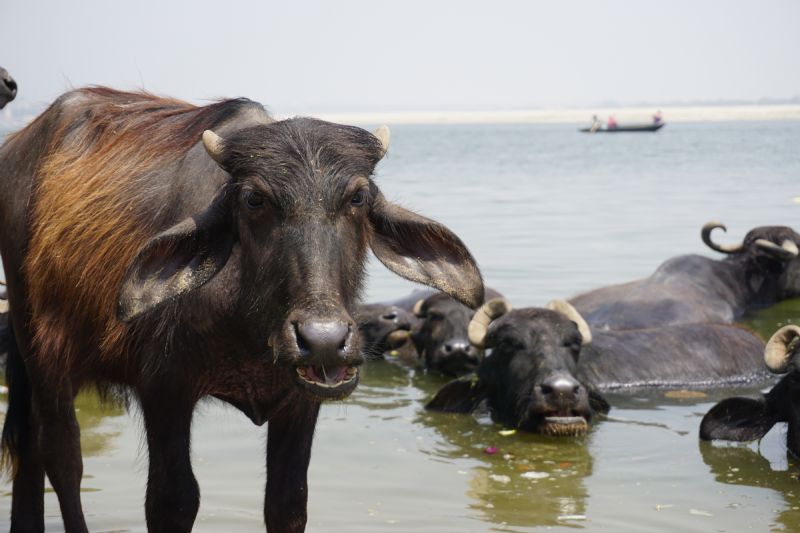I’d like to introduce you to one of the many “Holy Cows” of Varanasi. They love eating garbage more than that raccoon that wakes you up every night.