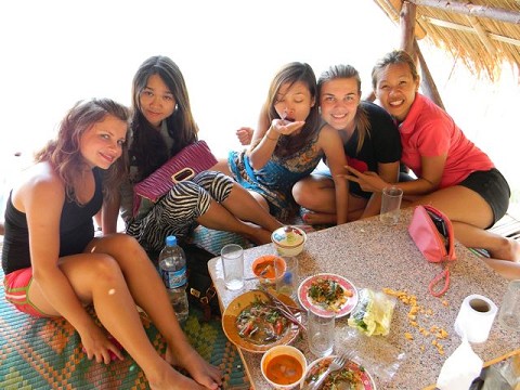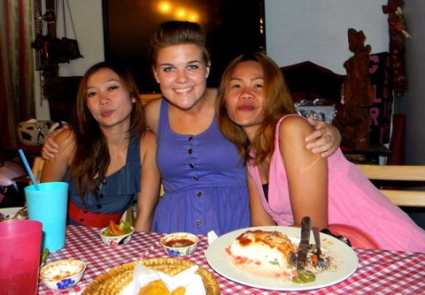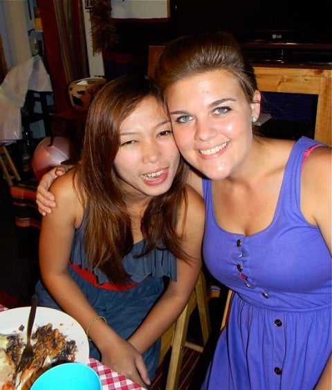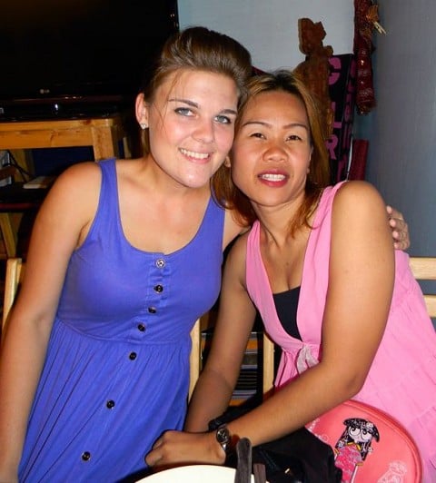 foreign man walks by she plasters a smile on her face and says “Hello come