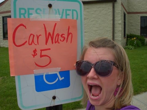 (My brother Darick was awesome! those muscles brought in business:) haha, he and his gf Sarah were awesome holding signs in the heat at the road! )