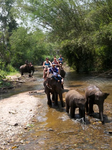 Thailand is known for elephants so the first part of our tour was to go on an elephant ride. We fed them bananas and they repaid us by spraying us with water.