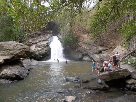 After a delicious traditional Thai lunch of pork, rice, vegetables, fried egg and fresh pineapple, we stopped by a local market in one of the villages to buy some handmade goods. Then we escaped the heat by jumping into a swimming hole at the bottom of a waterfall.