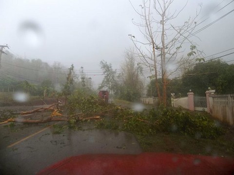 The last part of our tour was supposed to be bamboo rafting, but the weather changed our plans. As we were getting out of the water, storm clouds rolled in and during the drive to the rafting launch, we had to pull over to wait out the storm. It just appeard to be raining hard, but once we started driving again we realized how bad the brief storm had been. Now I'm from tornado alley, but this might have been the worst storm damage I've ever seen, or at least ever drove through immediately afterward. Cars flipped over, roofs blown off houses, flooded streets and down trees and power lines everywhere. We drove over trees, or had to get out and move them, did some off-roading, and more than once I thought the rushing water was going to sweep us off the road.