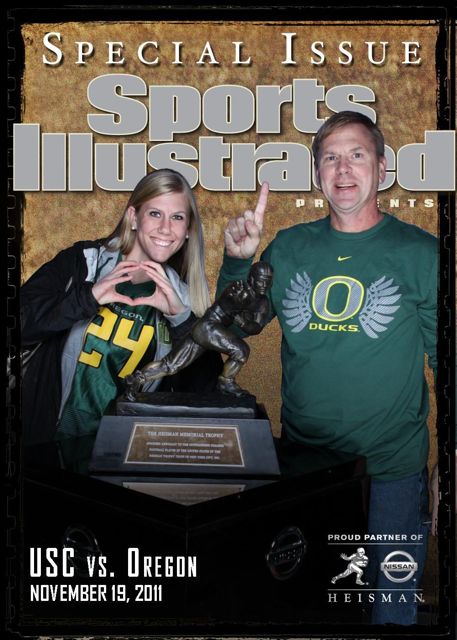 Posing for a photo with the Heisman trophy last fall at a Ducks game in Eugene.
