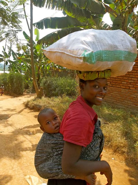 Rwandan women carrying babies on their backs and all sorts of things on their heads